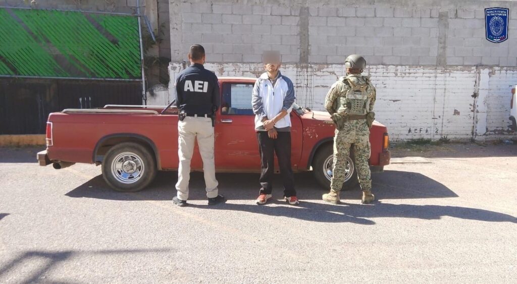 La detención de la citada persona se efectuó en las calles Adolfo López Mateos y Niños Héroes de la colonia Guadalupe Victoria, en donde los agentes revisaron el vehículo que conducía de la marca Chevrolet, línea S-10, modelo 1991, color rojo, con placas del estado de Chihuahua.