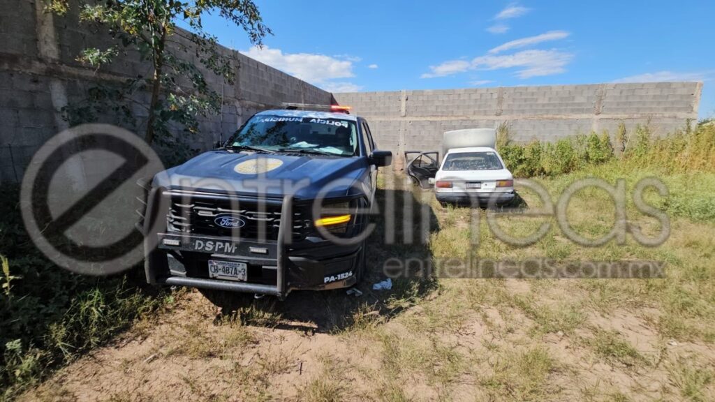 El hecho sucedió en el cruce de las calles Sierra de los Arados y Félix Piña en la colonia Sierra Azul, en donde localizan el vehículo Nissan Tsuru color blanco con placas ENJ8834.