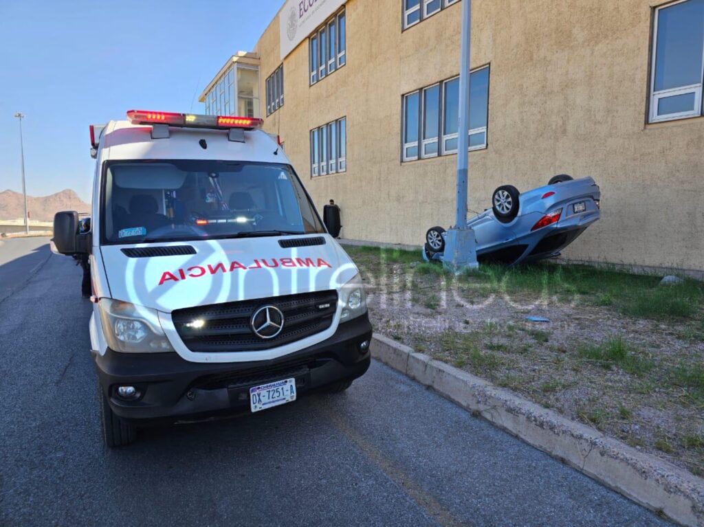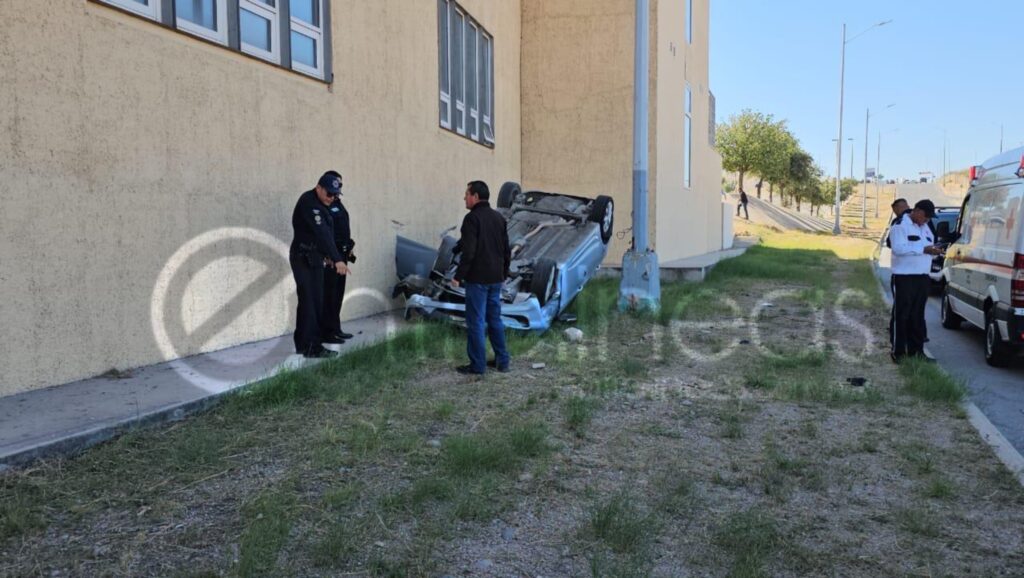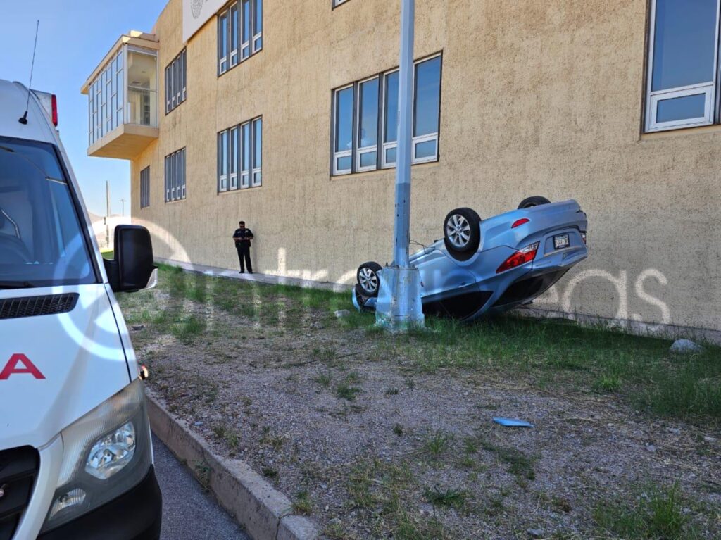 Un estudiante de la Universidad Autónoma de Chihuahua (UACH) de 25 años de edad que circulaba a bordo de un vehículo Dodge Attitude sobre el circuito universitario casi periférico De la juventud a espaldas de la oficina de representación de la secretaría de economía Federal, perdió el control del volante, se impactó contra la banqueta lo que provocó una volcadura, quedando sobre su toldo.