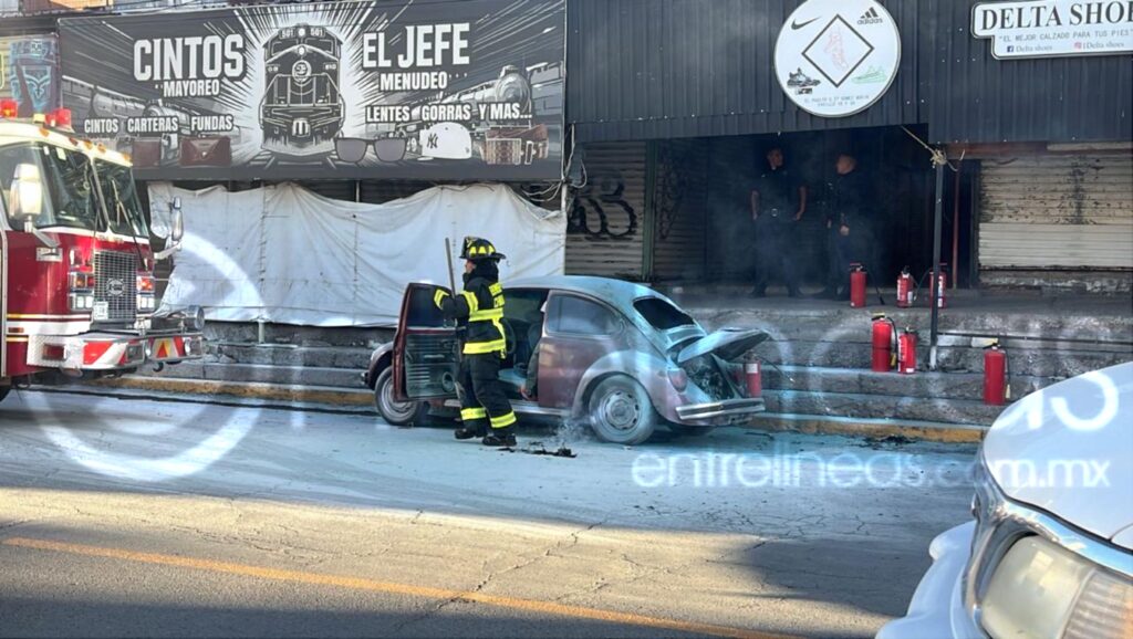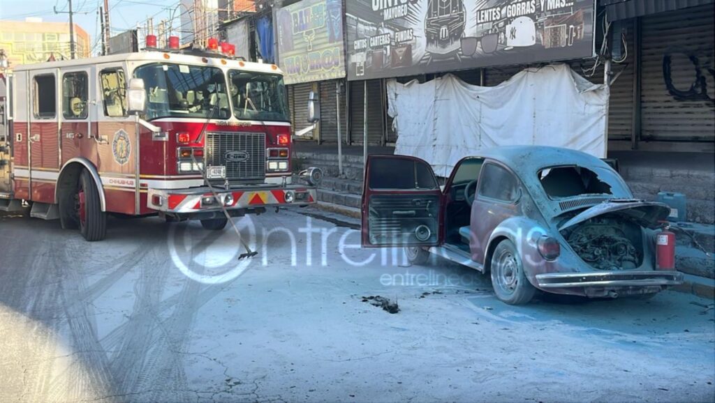 El fuego consumió la parte trasera de un Vocho, posteriormente llegaron bomberos donde revisaron el automotor que ya habían sofocado con extintores de una falla te pudo haber sido eléctrica.