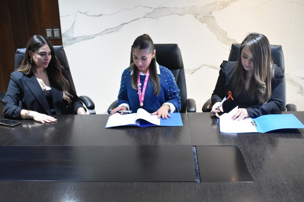 La firma del convenio estuvo a cargo de la Directora General de los CEJUM en el estado de Chihuahua, Tatiana Carreón Lara; la coordinadora del CEJUM “Marisela Escobedo Ortiz” en Ciudad Juárez, Silvana Fernández Meléndez; por la empresa, Luisa Rodríguez y el director de la URN, campus Juárez, Alfonso Rodríguez Aguilar.
