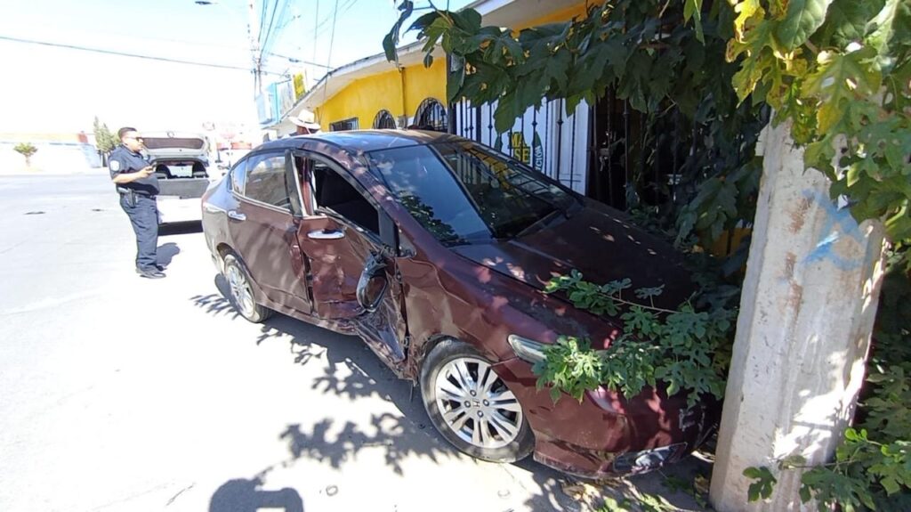 En el cruce de la lateral de la avenida Dostoyevski cruce con la calle Carlos Greene en la Colonia Ponce de León se presentó un aparatoso accidente que afortunadamente solo dejó cuantiosos daños materiales.