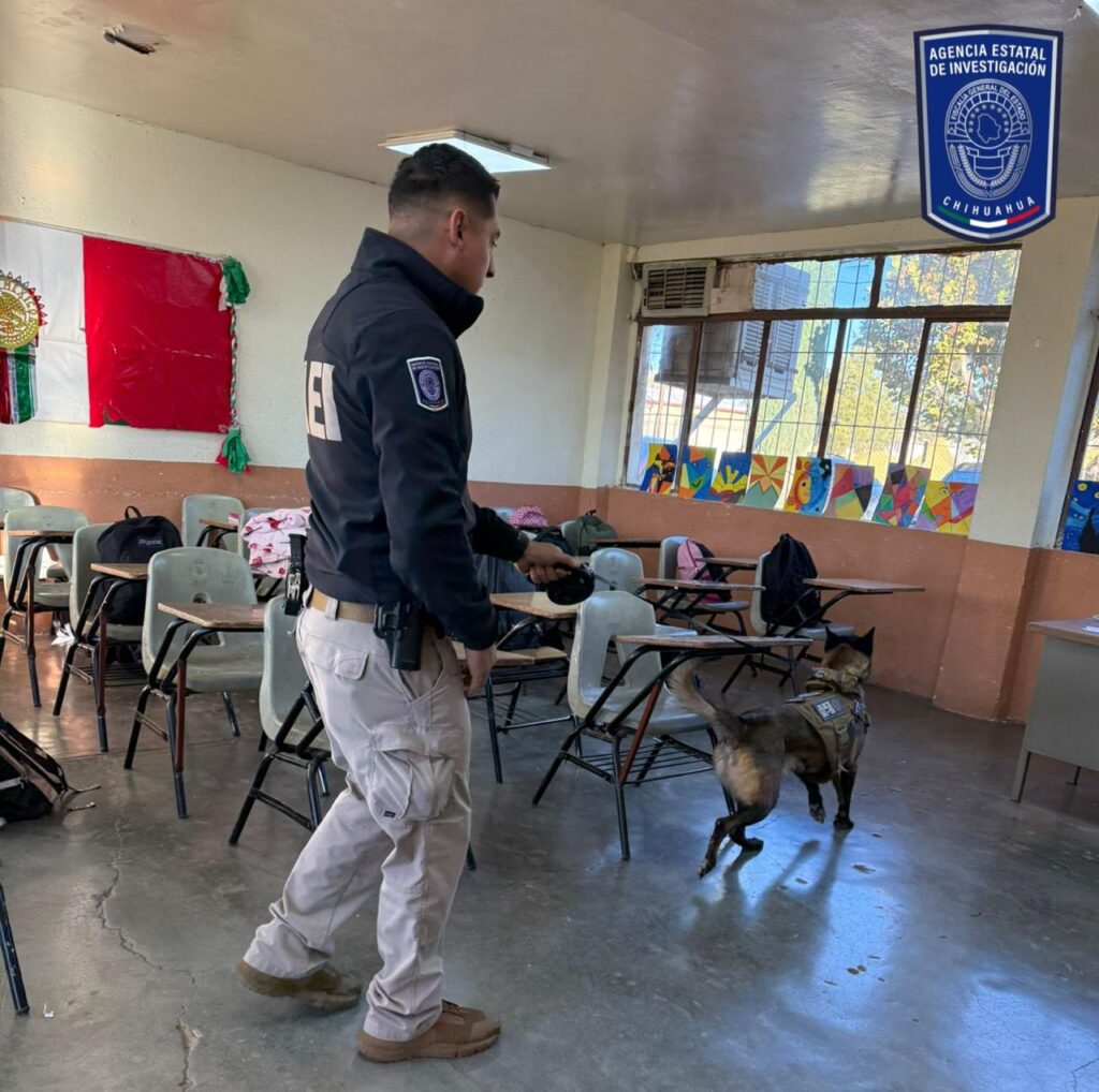 Participaron en la inspección de aulas y áreas de uso común, agentes caninos de la Unidad de Búsqueda y Rastreo K9, de la Agencia Estatal de Investigación de la Zona Norte, la presidenta de la Sociedad de Padres de Familia y un agente del Ministerio Público, quienes conformaron la brigada escolar.