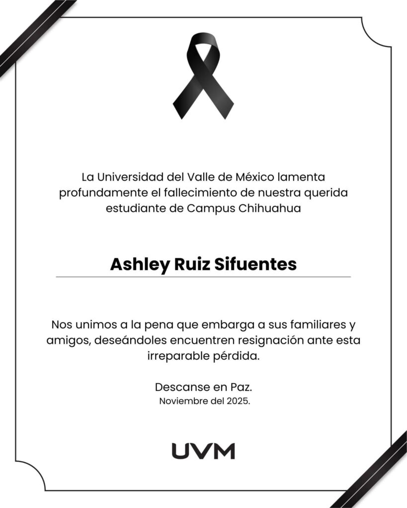 Se trata de Ashely Ruiz, quien tenía 20 años de edad y era alumna de la Universidad del Valle de México Campus Chihuahua.