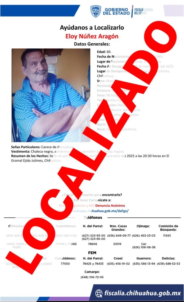 La Unidad de Investigación de Personas Ausentes y/o No Localizadas de la Fiscalía de Distrito Zona Centro, localizó sanos y salvos a tres masculinos que tenían reporte de ausencia, interpuestos en la ciudad de Chihuahua.
