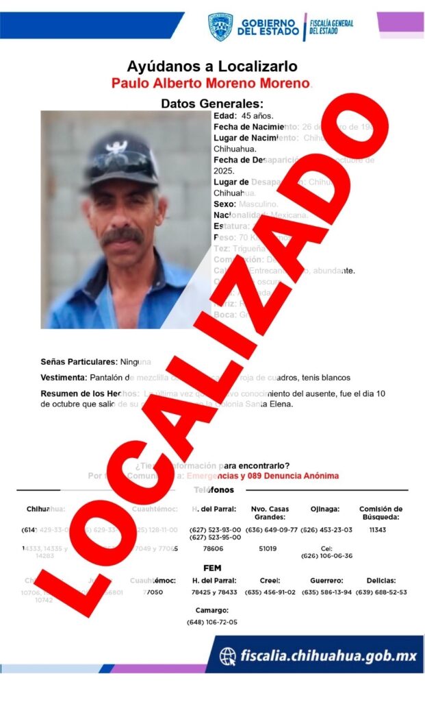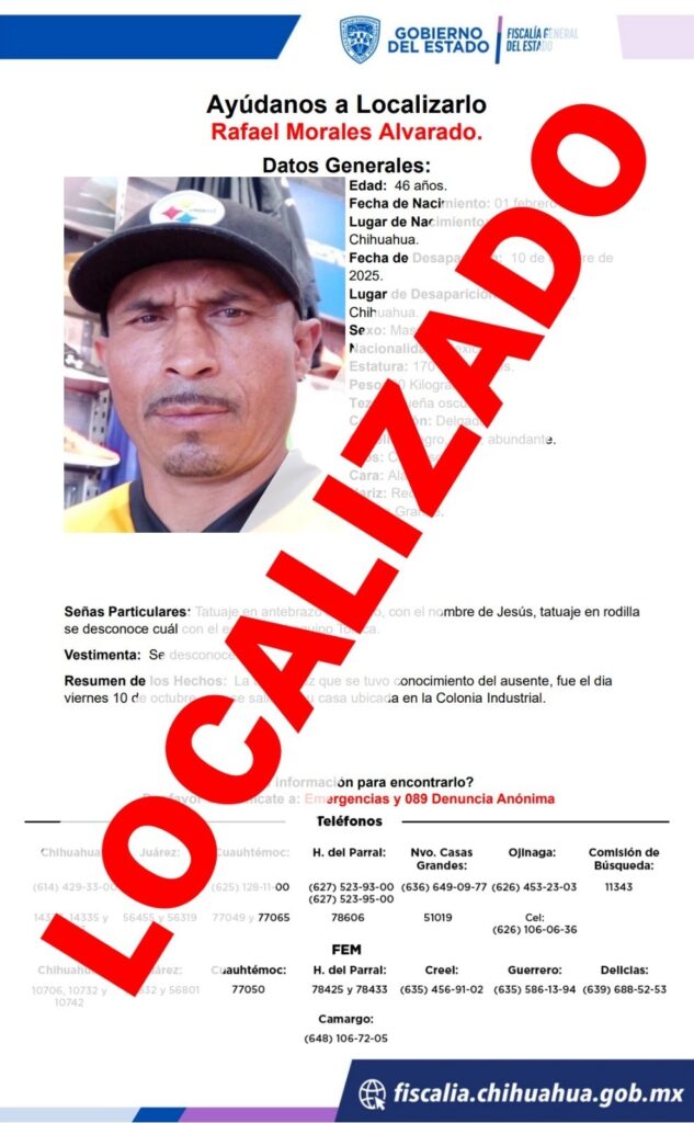 La Unidad de Investigación de Personas Ausentes y/o No Localizadas de la Fiscalía de Distrito Zona Centro (FDZC), encontró sanos y salvos a tres hombres que tenían reporte de ausencia en la ciudad de Chihuahua.