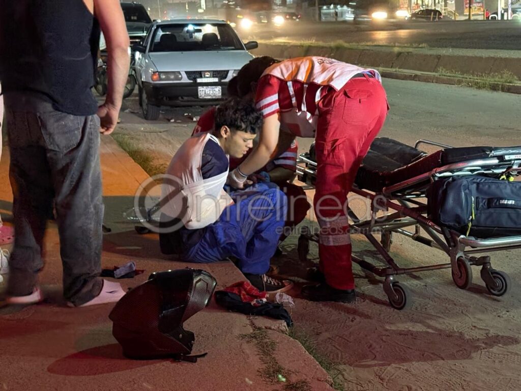 Un motociclista resultó con lesiones de consideración la noche de este jueves, luego de atropellar a un perro sobre la lateral de la avenida Fuentes Mares, a la altura de la calle Defensa Popular, en la colonia Villa Juárez.