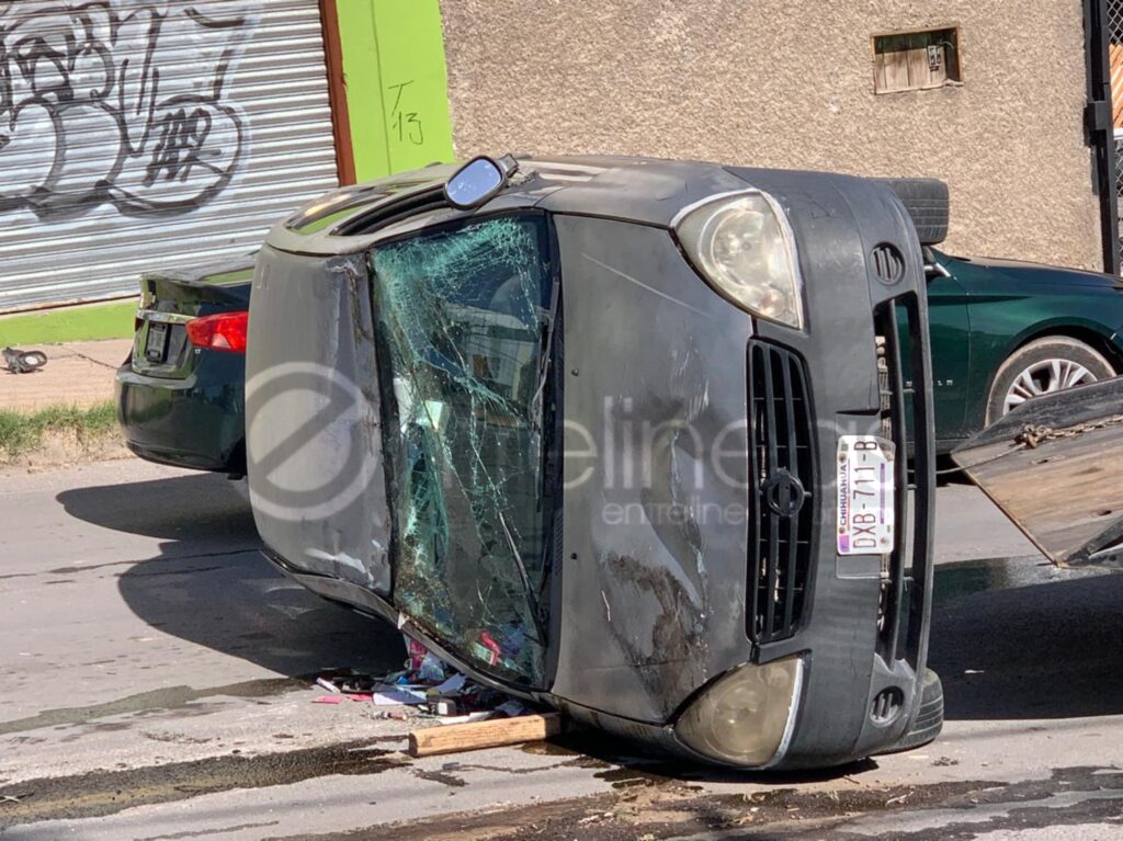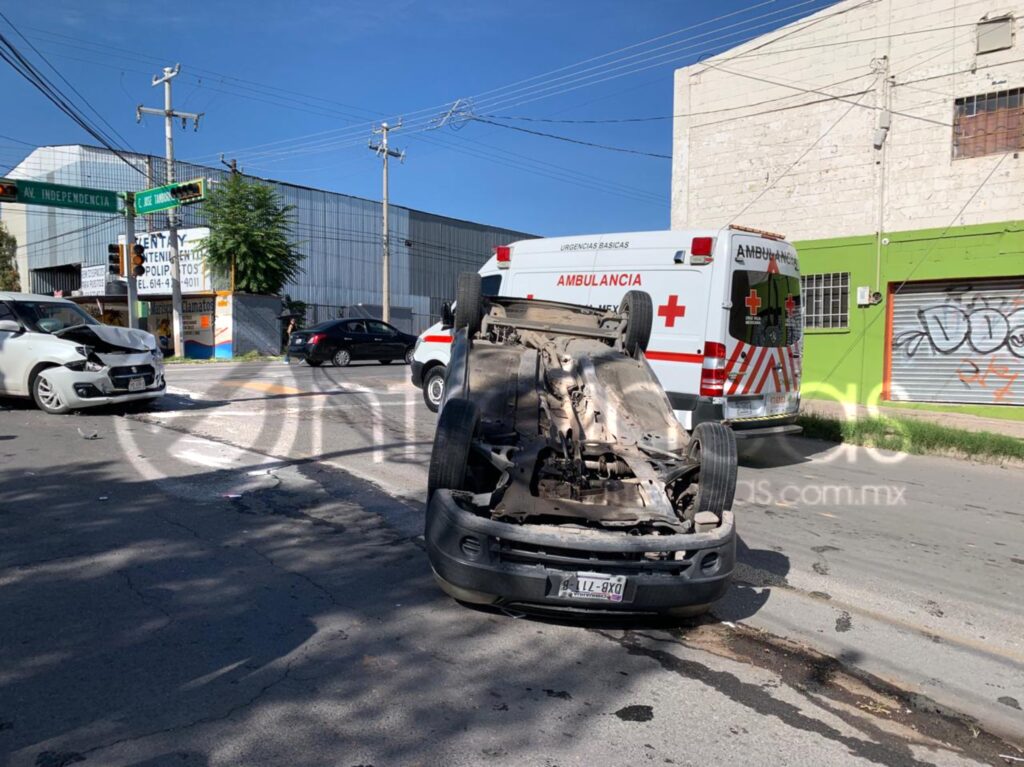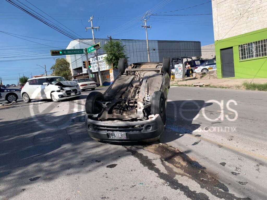 La mañana de este lunes se registró un choque con volcadura sobre la avenida Independencia y Tamborel entre un Nissan platina y un Suzuki Swift.