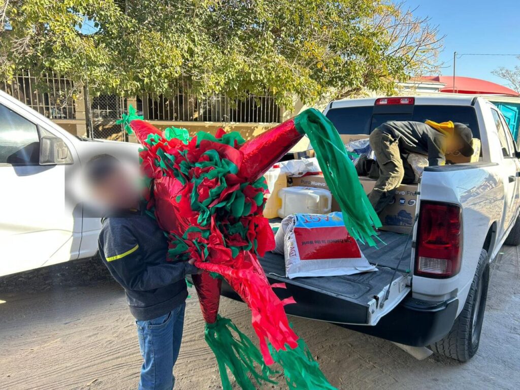 En las instalaciones de la casa hogar ubicada en la colonia Zaragoza, los agentes consintieron a 40 menores de edad con regalos, piñata, pizza, además de llevarles despensa y artículos de limpieza.