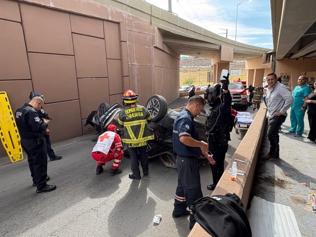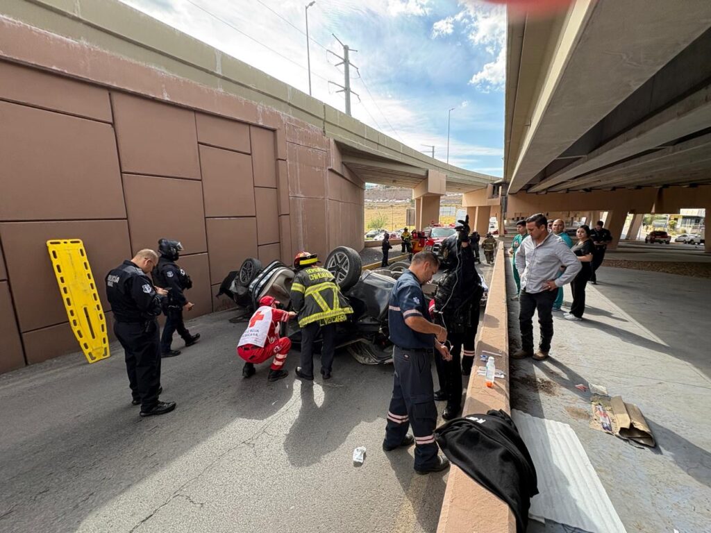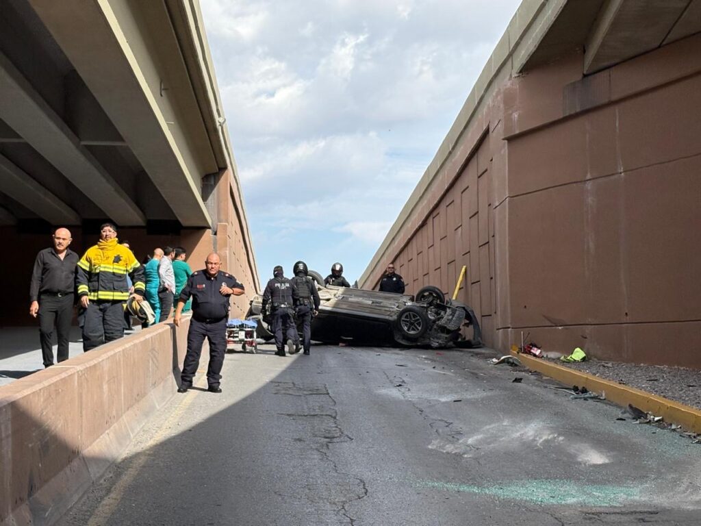 Un impresionante accidente se registró este mediodía sobre el periférico De la Juventud. Se trató de un choque con volcadura sobre periférico de sur a norte, cuando circulaba el conductor de un Nissan Sentra sobre el puente de vía Sicilia.