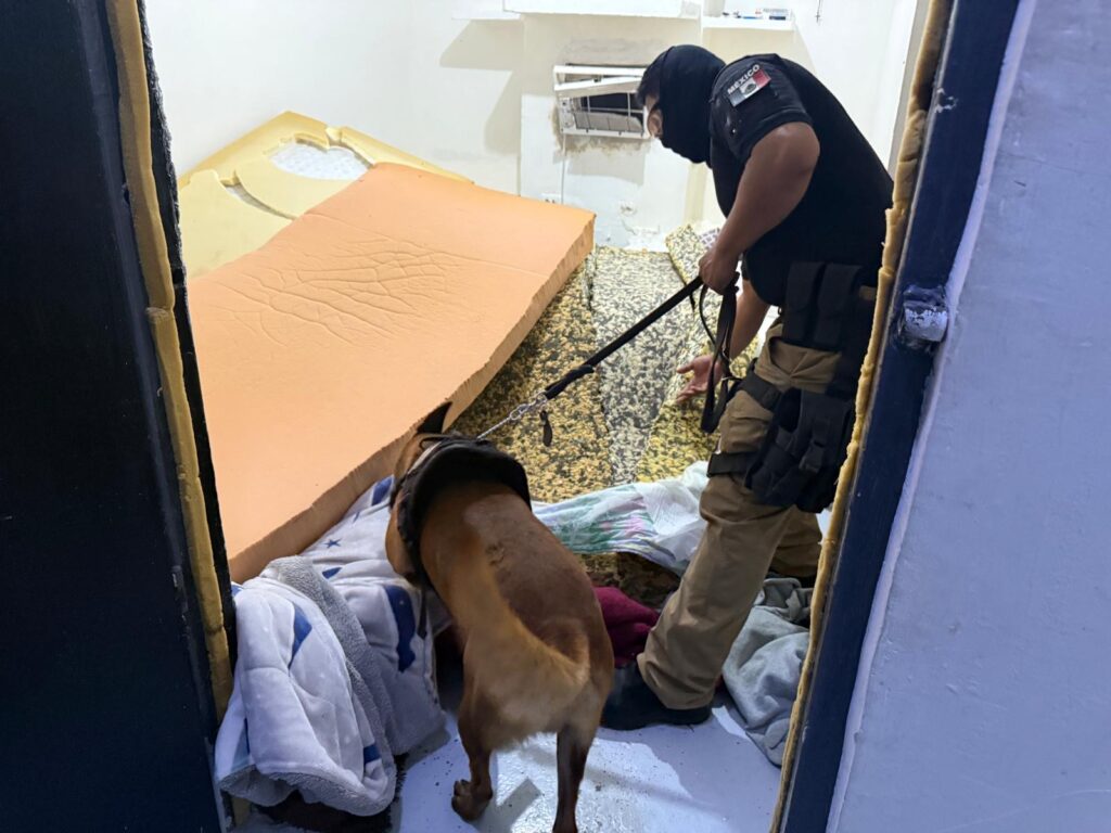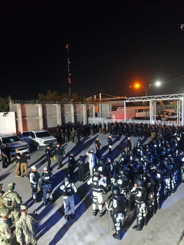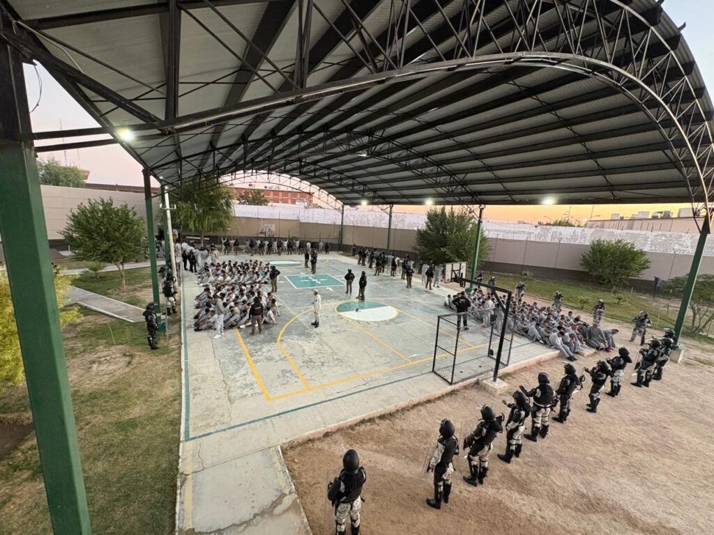 La acción se realizó en coordinación con autoridades de los tres niveles de gobierno, con el objetivo de detectar y extraer objetos no permitidos y/o prohibidos, además de mantener la gobernabilidad, estabilidad y seguridad en los Centros Penitenciarios del Estado de Chihuahua.