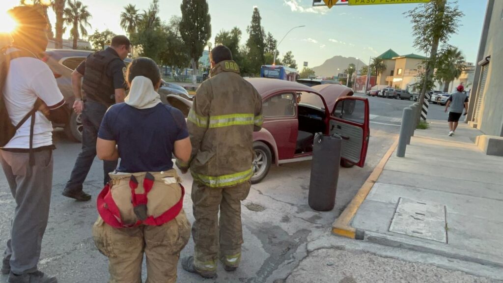 Elementos de bomberos se movilizaron la mañana de este martes para sofocar un incendio del motor de un VW conocidos como “vochos” sobre la avenida Ocampo y De la Llave en la colonia Centro.