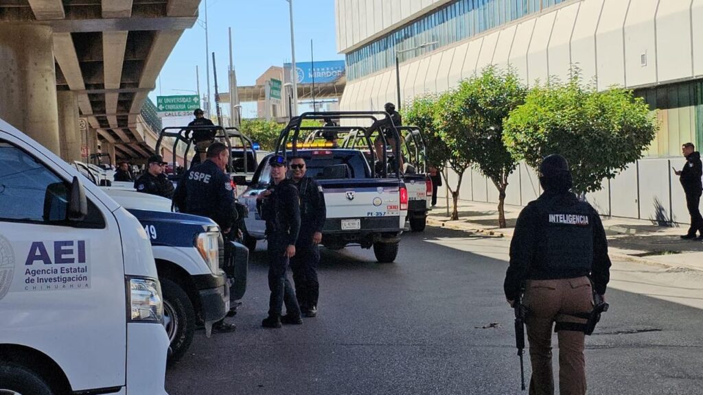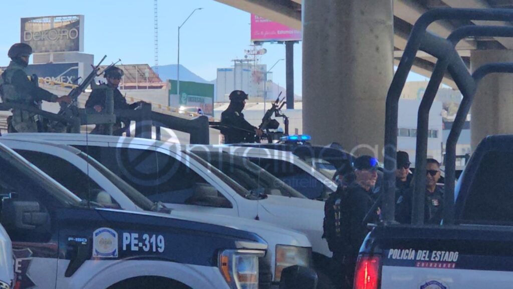 Este mediodía arribó un convoy custodiado por elementos de la Guardia Nacional, Ejército Mexicano y elementos de la SSPE a las instalaciones de la Fiscalía zona centro ubicada sobre la avenida Teófilo Borunda y 25, luego de la detención de nueve sujetos que participaron en el enfrentamiento armado esta mañana en la comunidad de El pueblito, comunidad del municipio de Aldama.