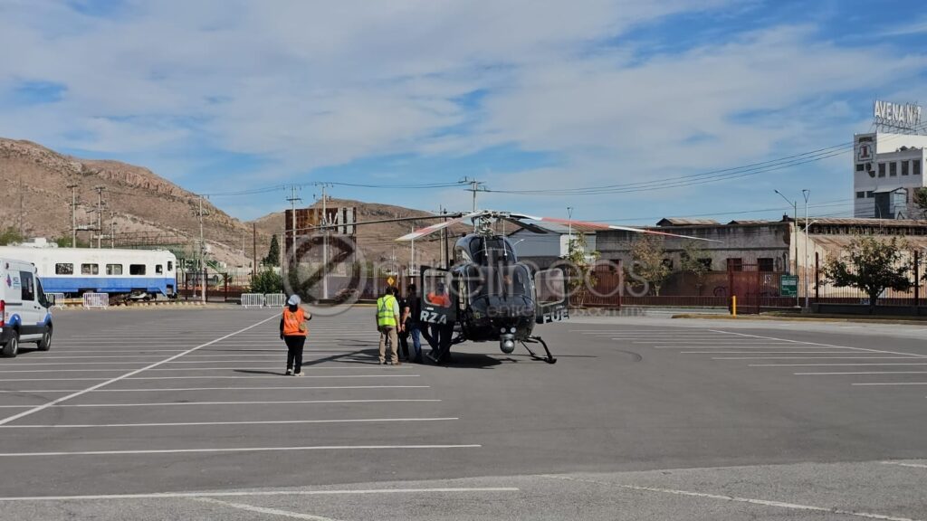 El helicóptero aterrizó en el Centro de Convenciones y Exposiciones en donde paramédicos de la Unidad de Rescates del Gobierno del Estado (URGE) ya estaban a la espera para el traslado a un hospital.