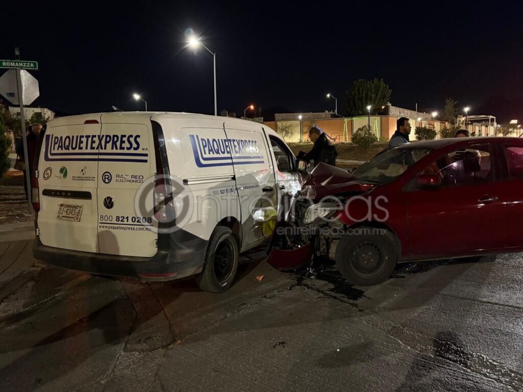 De acuerdo con el reporte preliminar, la conductora de un Nissan Versa color guinda circulaba por la avenida Romanza en sentido de norte a sur con vía libre, cuando una camioneta Volkswagen Caddy que transitaba de este a oeste por la calle Verona omitió el alto correspondiente y le cortó la circulación.