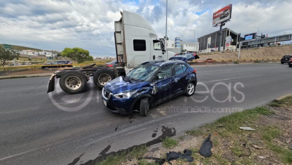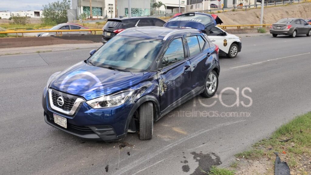 Sobre el periférico De la Juventud cruce con la Hacienda Los Morales frente a la plaza comercial high square ocurrió un aparatosa volcadura que dejó solo daños materiales en una camioneta Nissan kicks.