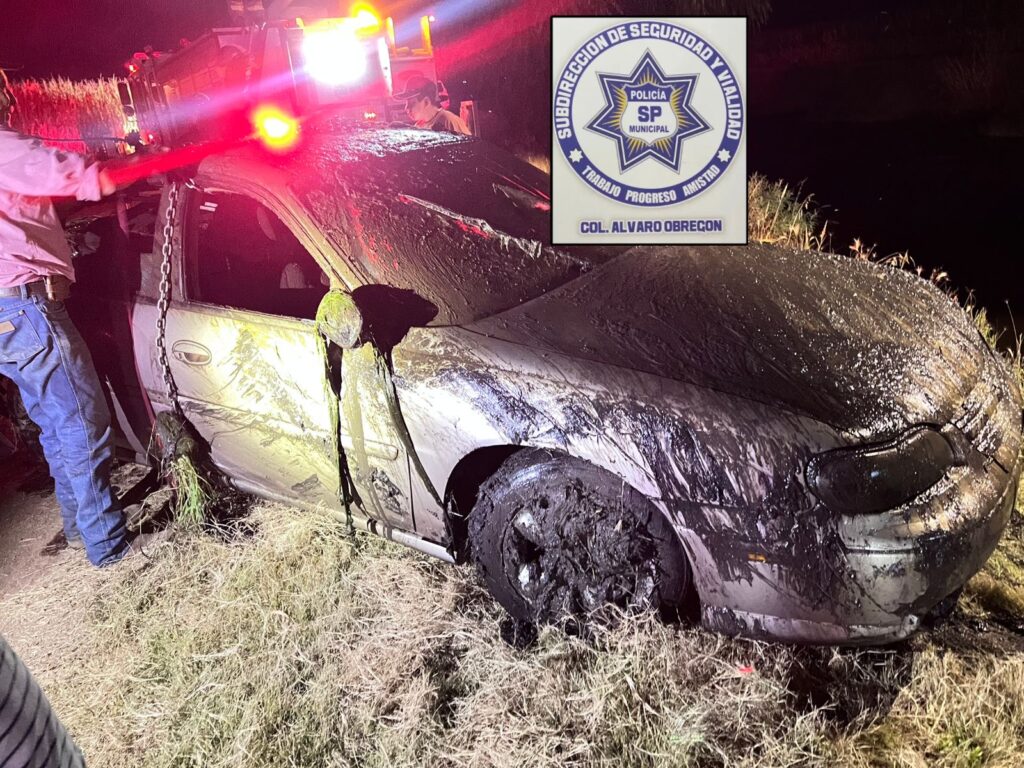 La tarde de este miércoles 1 de octubre, elementos de la Policía Seccional de Álvaro Obregón y del Cuerpo de Bomberos recuperaron un vehículo que se encontraba completamente sumergido en un sistema de riego en la brecha número 200, a la altura del kilómetro 1, tramo que conecta el campo menonita 101 con el 107.