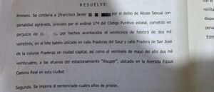 El pasado 14 de diciembre, una juez de control declaró culpable del delito de abuso sexual agravado a Francisco Javier G. N. por hechos cometidos en contra de una menor de edad en la ciudad de Chihuahua, que al momento de los hechos tenía 12 años.
