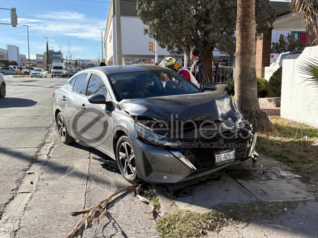 Conductora choca contra camellón y poste en el Periférico R. Almada; resulta con lesiones leves