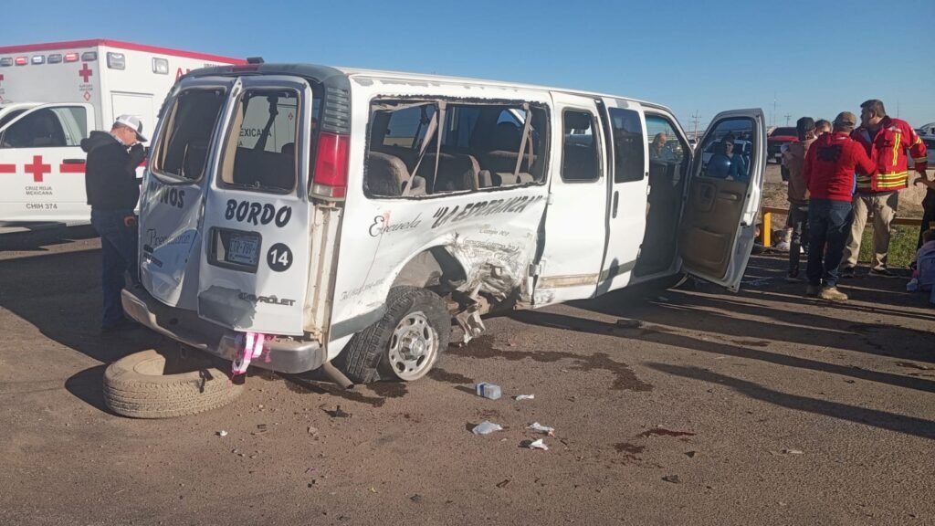 Choque en Carretera 5 involucra transporte escolar con menores a bordo en Cuauhtémoc