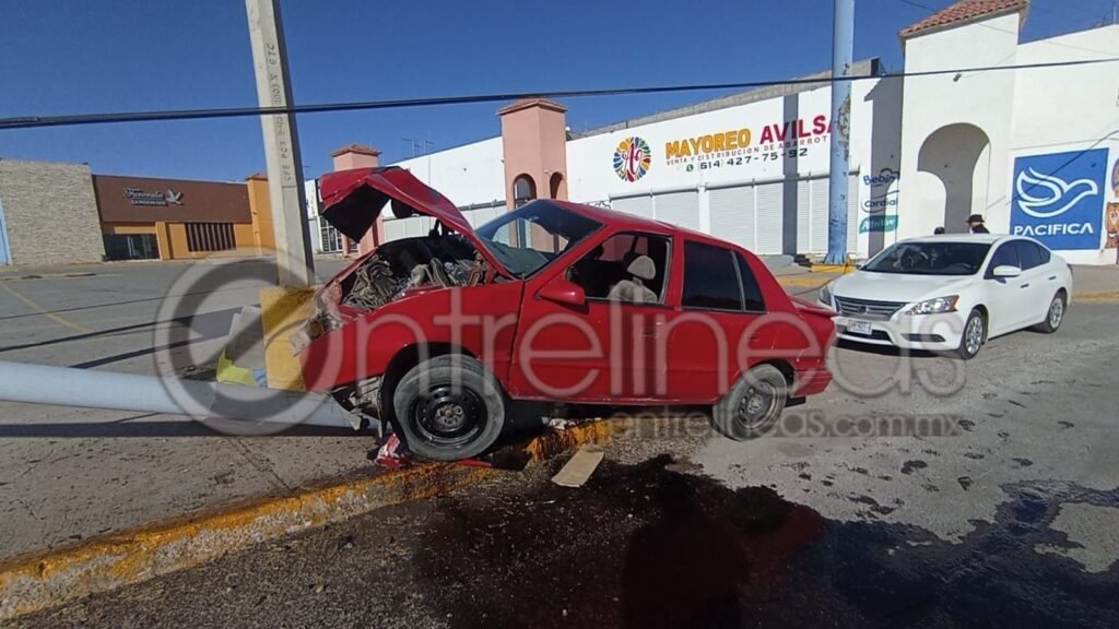 Un vehículo Dodge Shadow de color rojo modelo trazado quedó completamente destrozado de la parte frontal luego de impactarse contra una luminaria. La infraestructura de iluminación fue derribada quedando el vehículo encampanado en la base del poste cuando circulaba en sentido de este a oeste sobre la vialidad Nogales pasando la avenida Sosa Vera. Afortunadamente […]