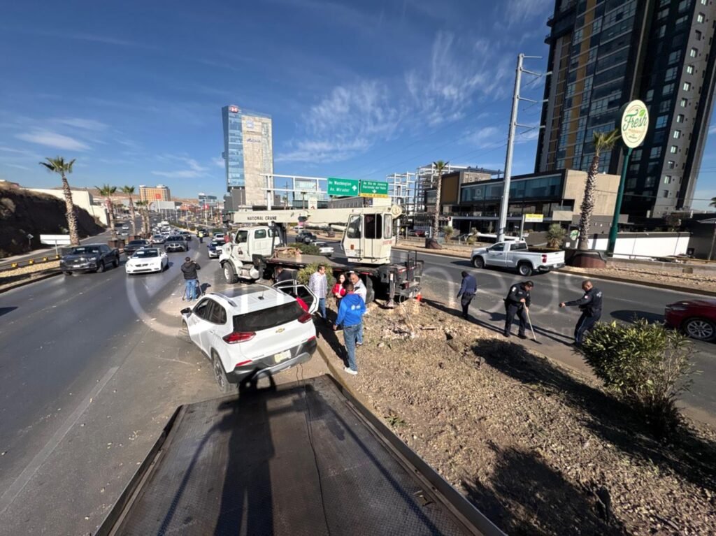 Choca camioneta contra grúa sobre periférico De la Juventud; cuantiosos daños materiales