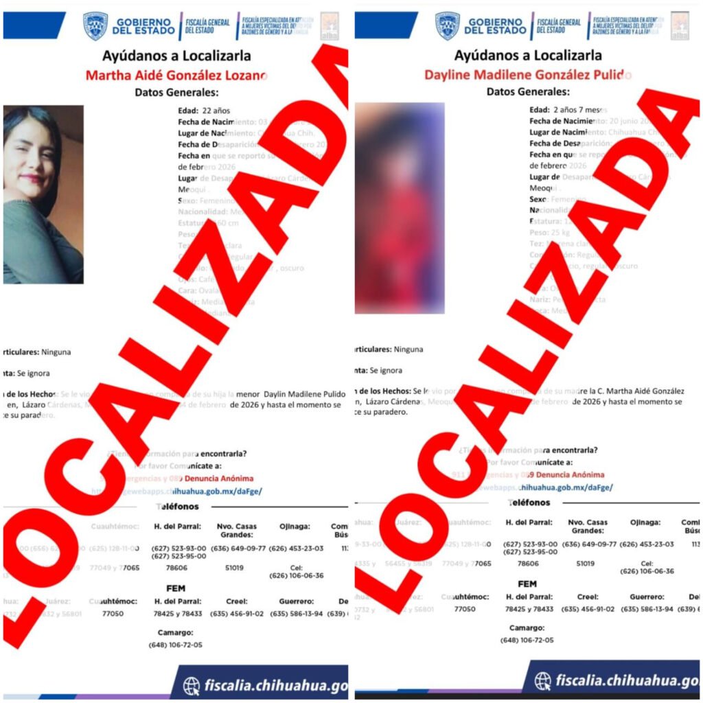 Localiza FEM a madre e hija con reporte de ausencia en Meoqui
