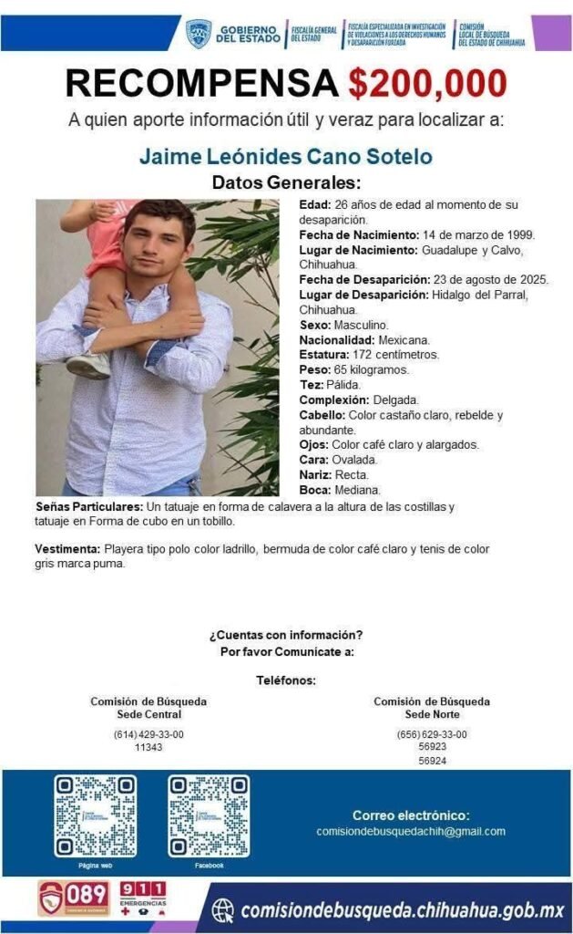 La Comisión Local de Búsqueda, en coordinación con la Fiscalía de Distrito Zona Sur, ofrece recompensa de 200 mil pesos a quien proporcione información veraz, útil y comprobable, que contribuya a la localización de Jesús Gerónimo Sánchez Tarín y otros 200 mil pesos, por información para encontrar a Jaime Leónides Cano Sotelo, quienes fueron reportados […]