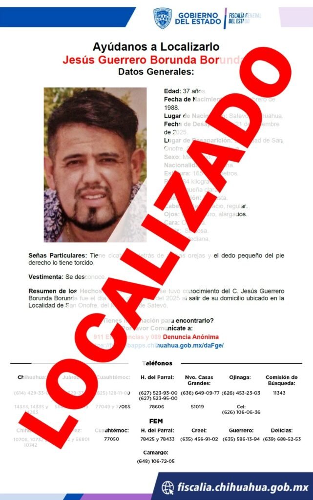 Localiza Fiscalía de Distrito a masculino con reporte de ausencia en Satevó