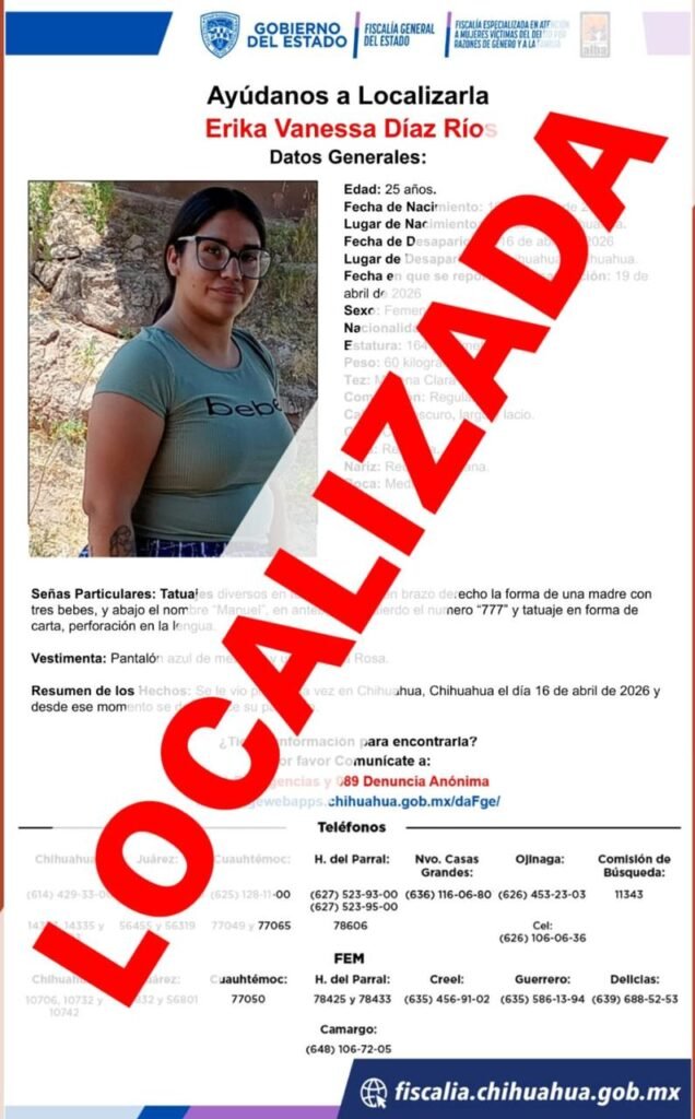 Localiza FEM a mujer reportada como desaparecida en la ciudad de Chihuahua