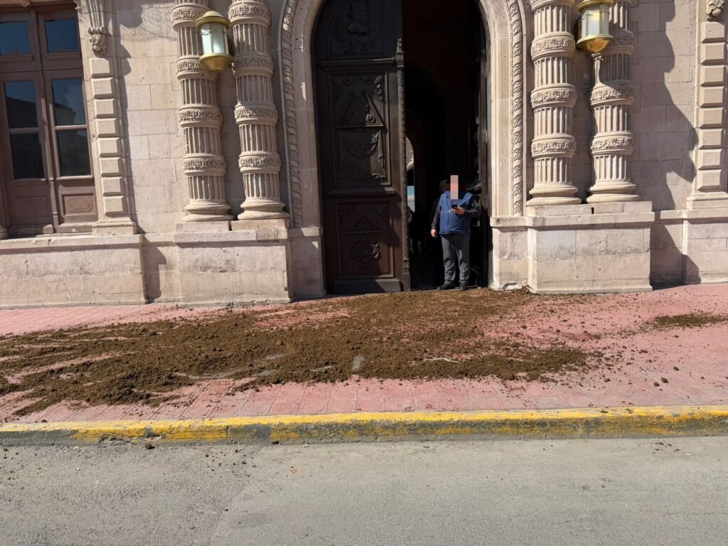 Arroja Retén Ciudadano estiércol en la entrada a Palacio, se retiran y liberan calles