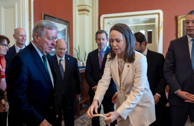 Washington. La opositora venezolana, María Corina Machado, declaró este jueves que “entregó” su medalla del Premio Nobel de la Paz al presidente estadunidense, Donald Trump, quien ha codiciado ese galardón, considerado intransferible por el comité que lo entrega. “Le entregué al presidente de Estados Unidos la medalla del Premio Nobel de la Paz”, indicó Machado a […]