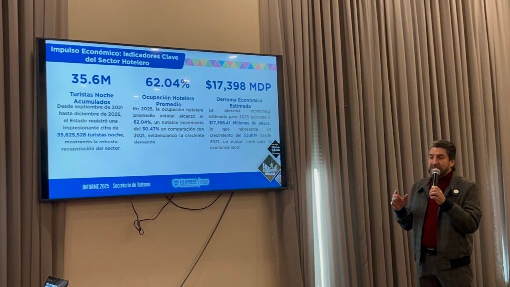 El secretario de Turismo, Edibray Gómez Gallegos dio a conocer que el 2025 cierra con 35.6 millones de visitantes al estado esto representa un incremento del 58.80 en derrama económica local. En este sentido el funcionario estatal indicó que desde septiembre de 2021 hasta diciembre de 2025, el Estado registró una impresionante cifra de 35,625,528 […]