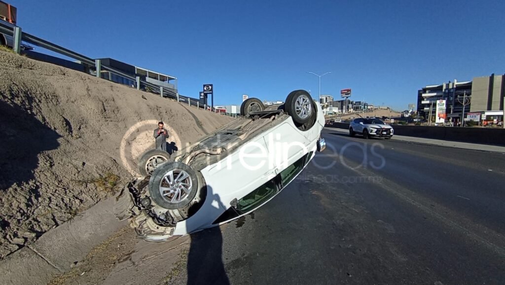Vuelca conductora a la altura de Hacienda Los Morales sobre periférico De la Juventud