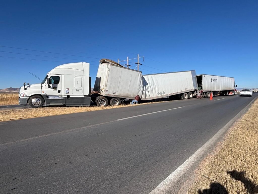 Al tratar de sortear el obstáculo y reincorporarse a la carretera, la diferencia de altura entre el pavimento y el camellón provocó que la estructura de la caja del tráiler se doblara.