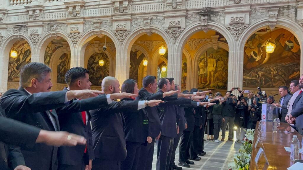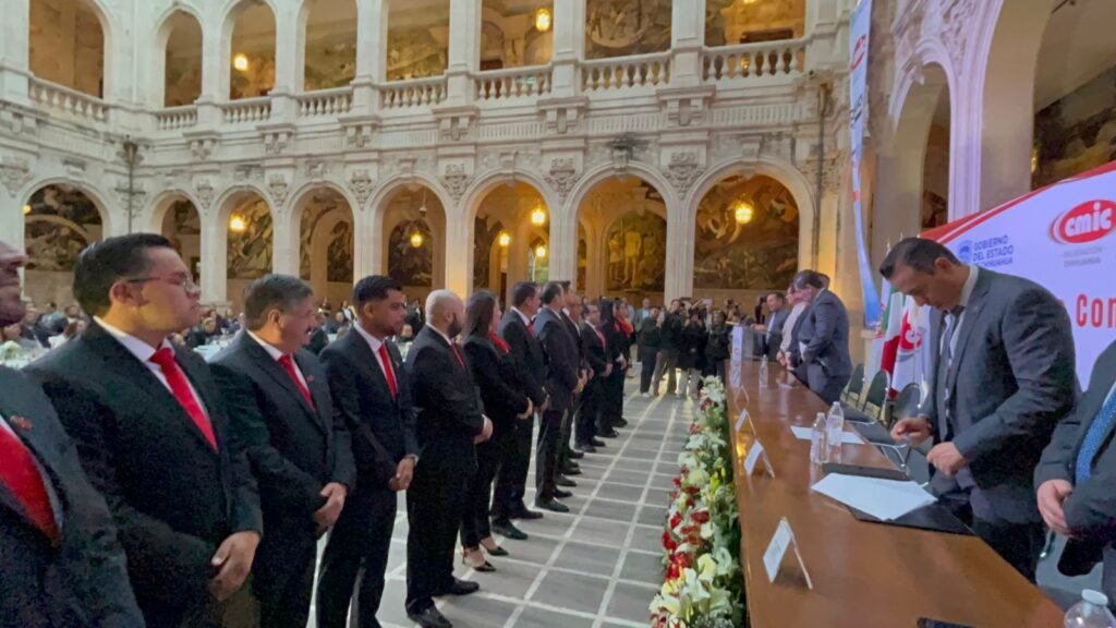 Esta tarde se dio la toma de protesta a la nueva mesa directiva de la Cámara Mexicana de la Industria de la Construcción (CMIC) esto en el patio central del palacio de gobierno.