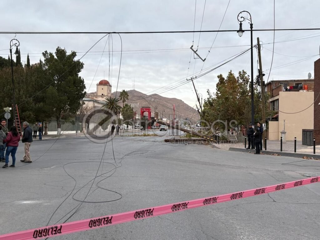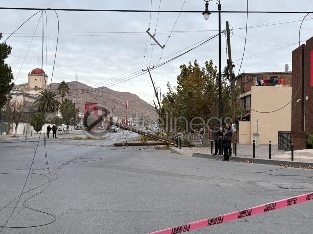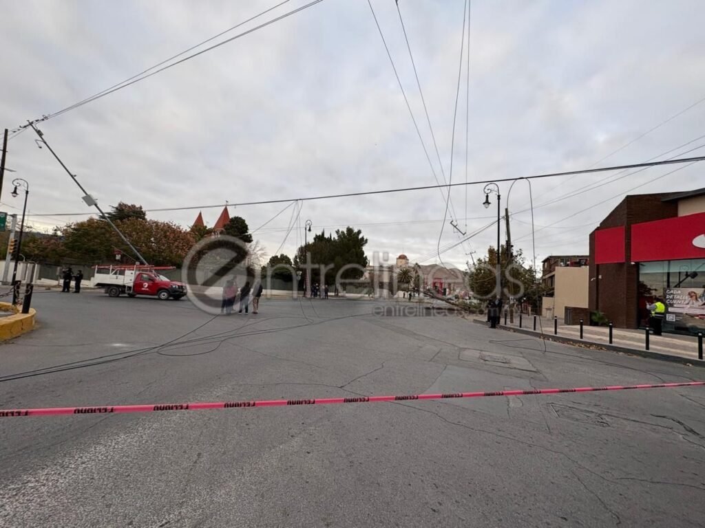 La tarde de este martes se registró un aparatoso incidente en el cruce de las calles Colón y Juárez, luego de que un tráiler se enganchara con cables de la empresa Telmex, lo que provocó la caída de un poste y daños en al menos tres estructuras más pertenecientes a la Comisión Federal de Electricidad (CFE).