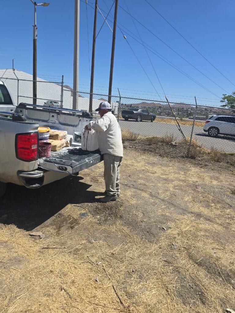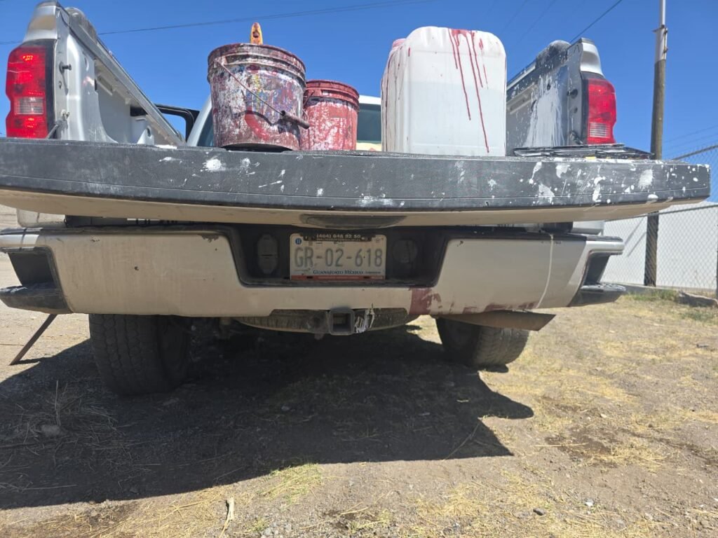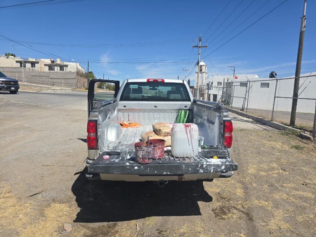 Los sujetos se trasladan en una pick up de color gris con placas de Guanajuato en la que trasladan botes de pintura y materiales diversos.