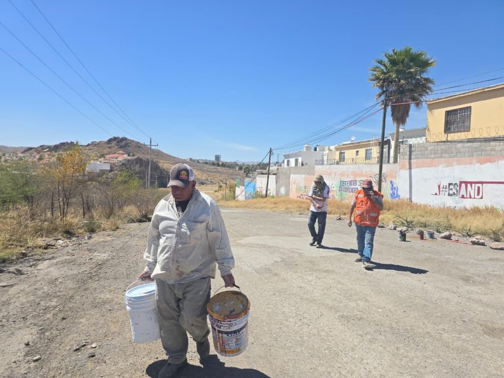 Vecinos de los Fraccionamientos Lomas captaron a un grupo de sujetos que estaban pintando una serie de bardas con el lema “#EsAndrea” encima de unos murales hechos por jóvenes de la zona, quienes previamente habían solicitado permiso del Gobierno Municipal.